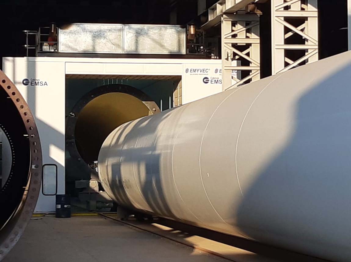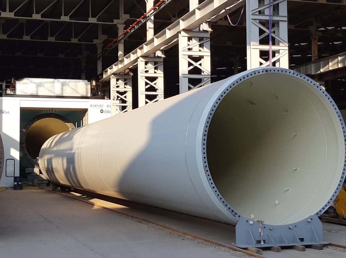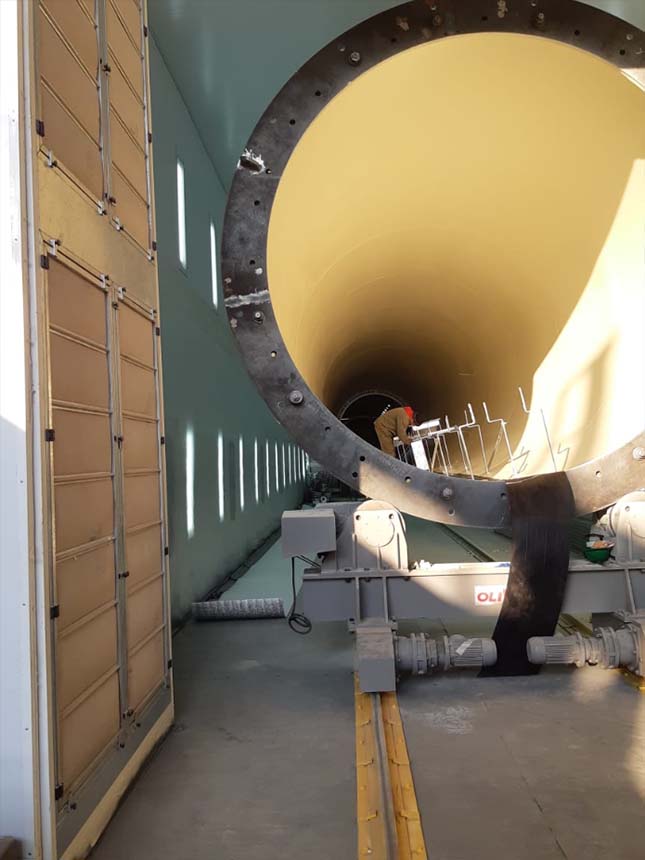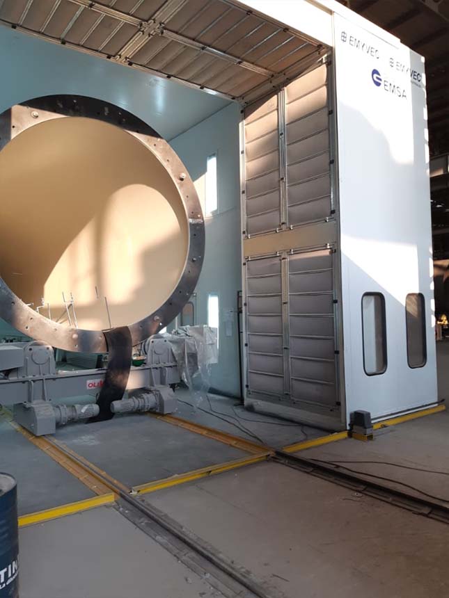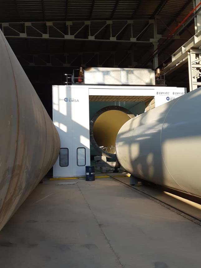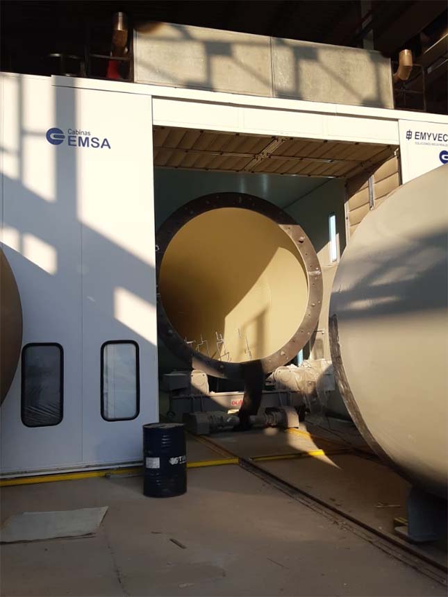Instalación para el tratamiento superficial y pintado de las torres eólicas que soportan a los molinos de generación de electricidad.