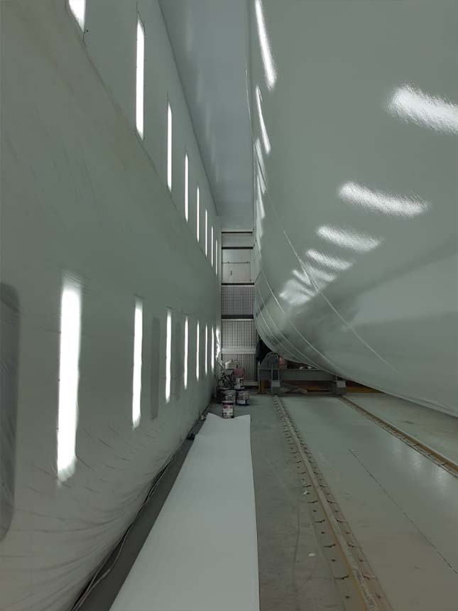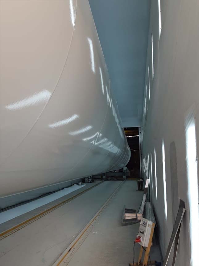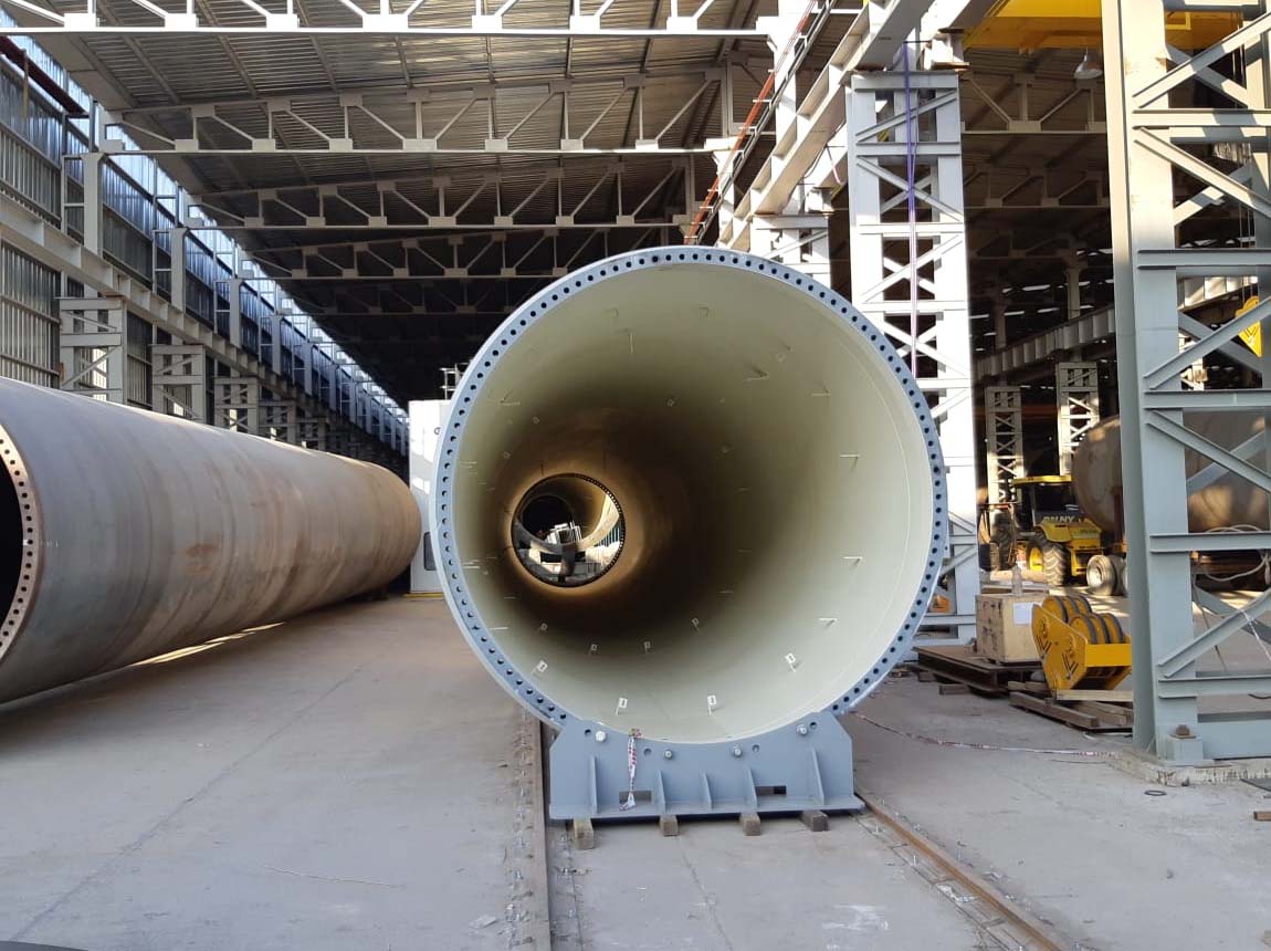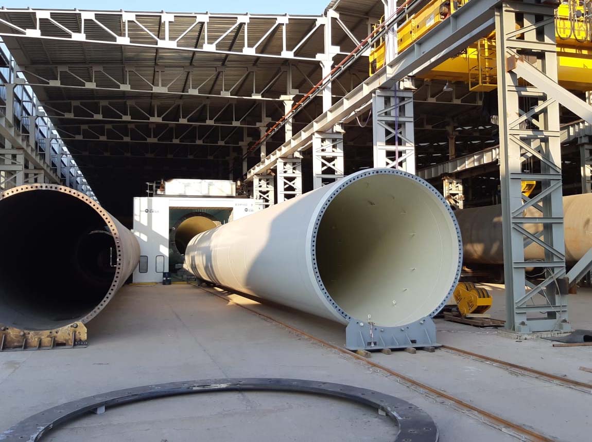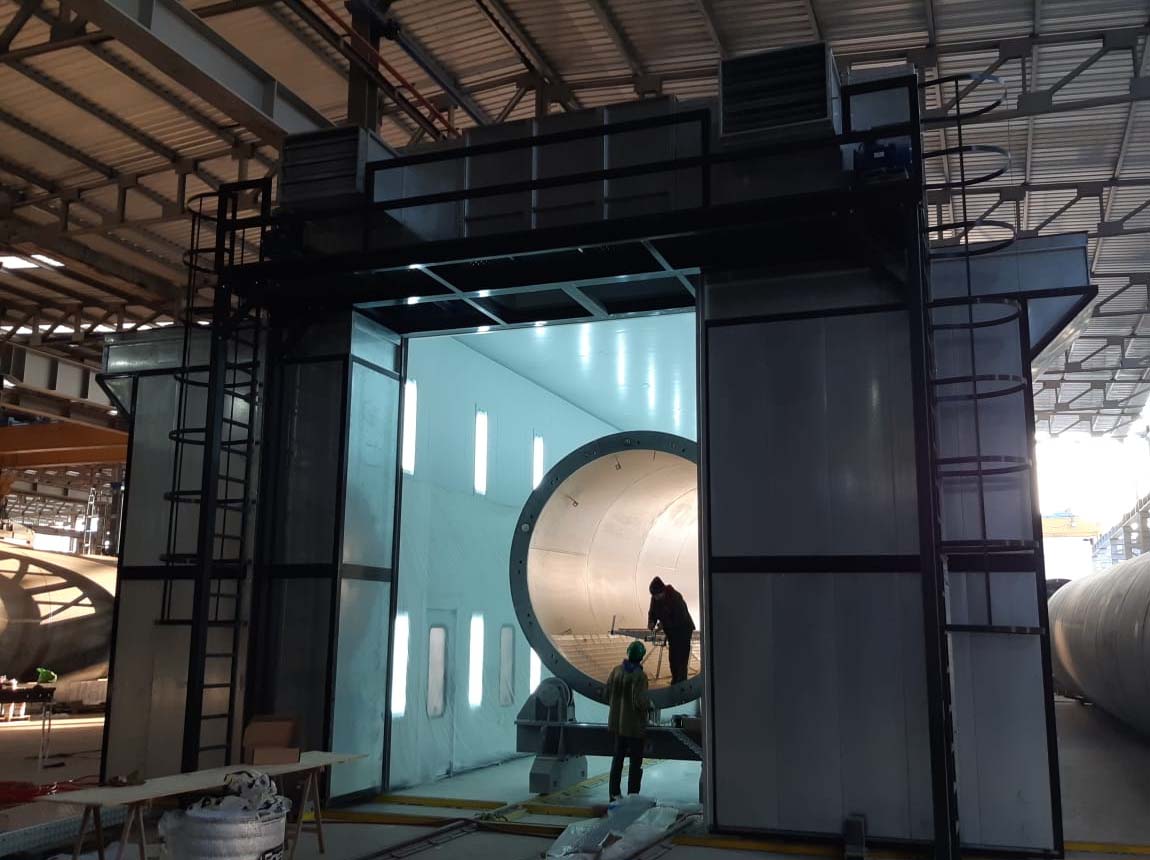 Instalación para el tratamiento superficial y pintado de las torres eólicas que soportan a los molinos de generación de electricidad.