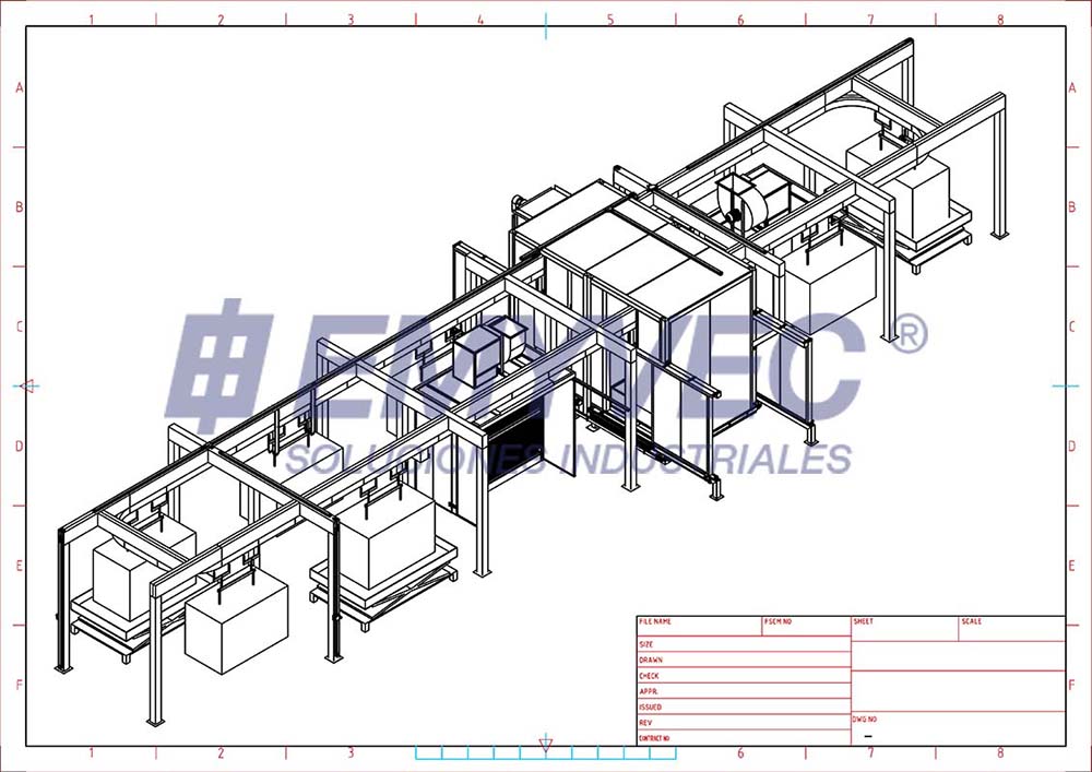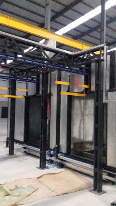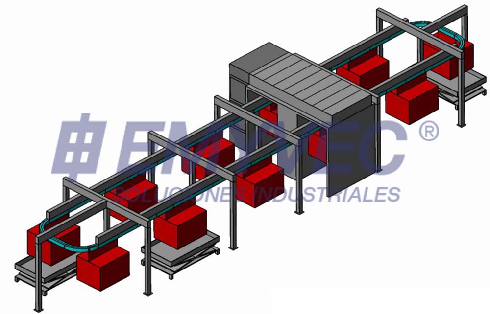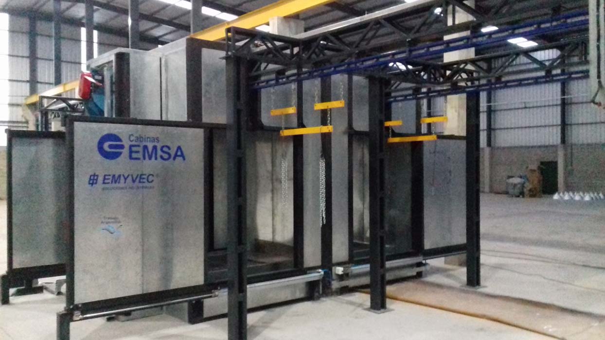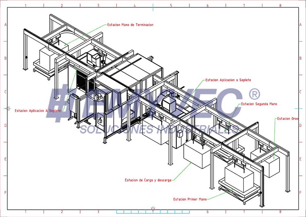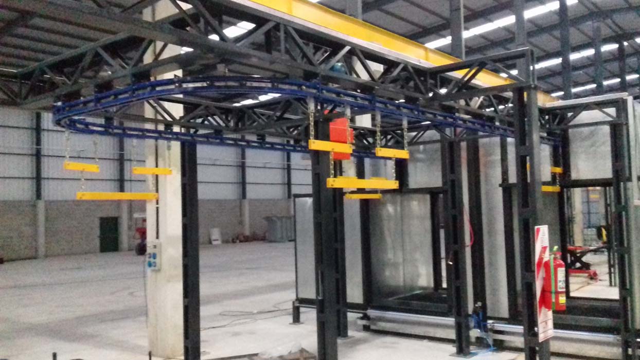 Línea semiautomática para pintado y horneado de transformadores. Sistema de pintado por chorreado.