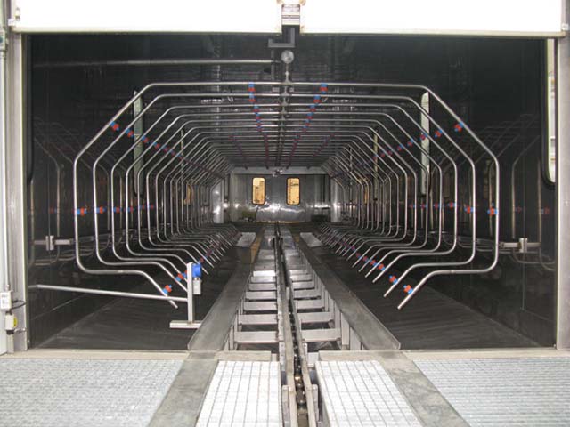Ingeniería previa, desarrollo, fabricación y montaje de una línea de pretratamiento y pintura, compuesta por desengrase, fosfatizado y pasivado automatico y pintado manual de chasis de omnibus urbanos.