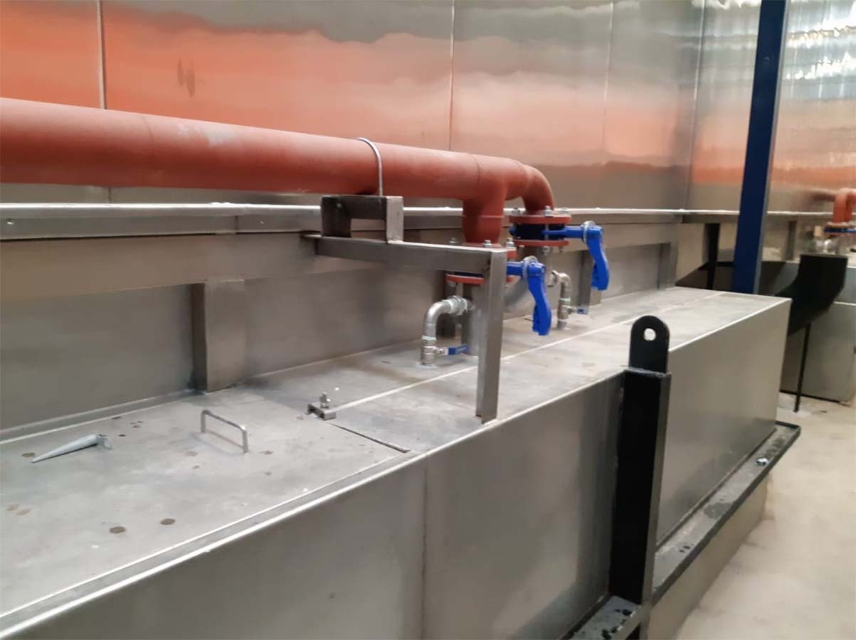 Inicio » Aplicaciones Industriales » Túnel de fosfatizado para estructuras metálicas